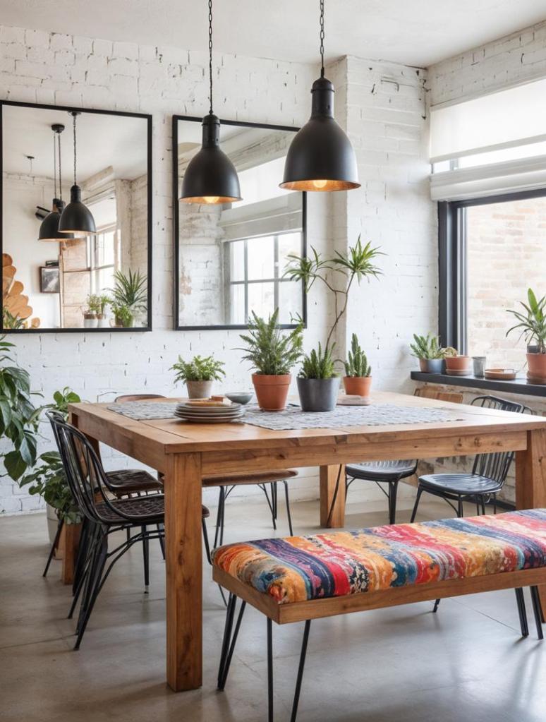 - Play with Different Chair Styles: Pair sleek modern chairs with more traditional, upholstered ones for contrast. Or combine chairs with high backs with lower, more casual styles. You can also incorporate a bench on one side of the table for a fresh, laid-back look.
