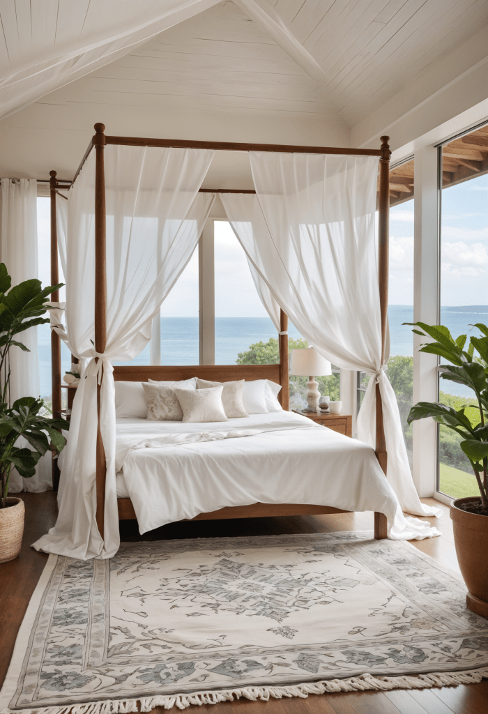 Now, let’s journey to Bali, Indonesia, a tropical paradise where lush greenery and handcrafted details bring harmony to every space. Picture a bedroom framed by oversized windows, letting in dappled sunlight filtered through palm fronds. The air carries the warmth of natural rattan furniture, accented by soft woven textiles and vibrant batik prints. A few thriving monstera plants spill over terracotta pots, while a low bamboo chair invites you to sit and breathe in the tranquility. Bali’s design essence lies in the balance of textures and the gentle integration of nature, creating a space that is both vibrant and meditative.