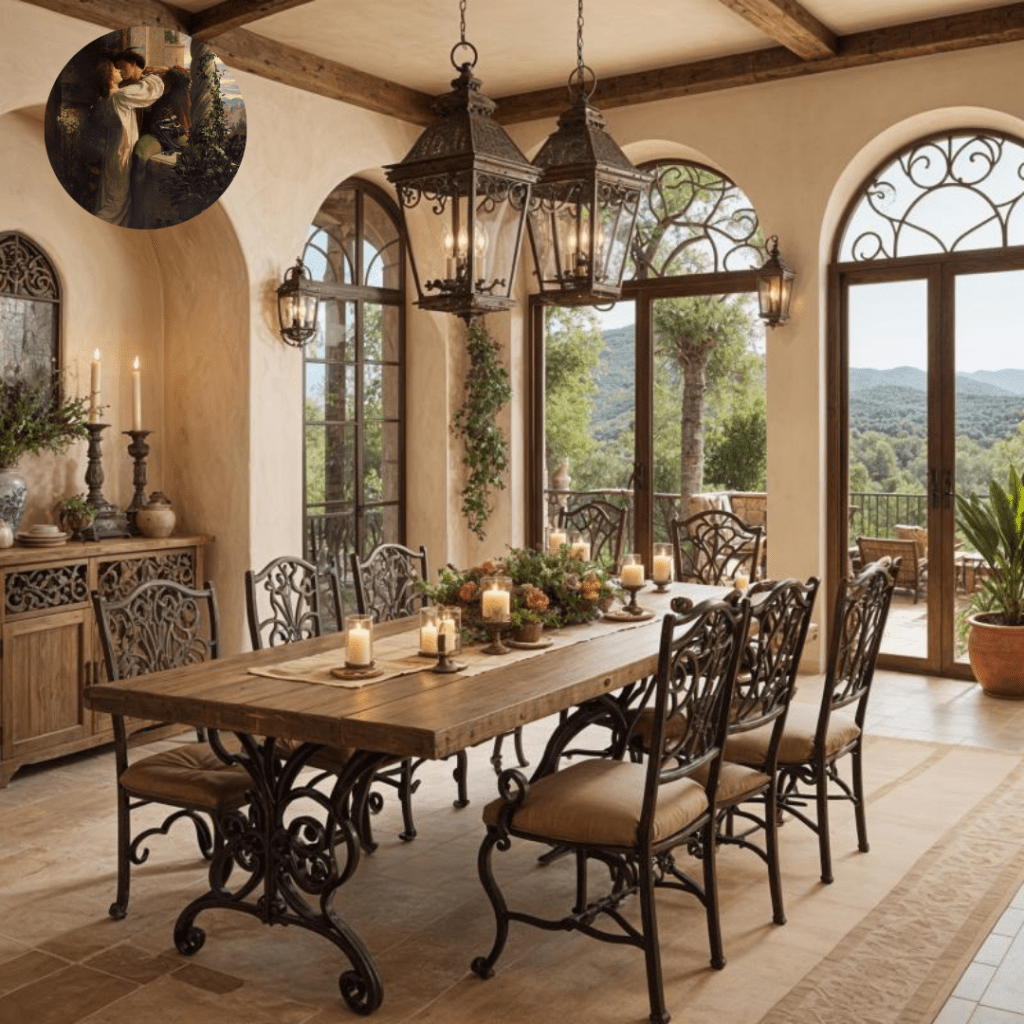 The ultimate star-crossed lovers, Romeo and Juliet’s setting in fair Verona calls for a warm, Tuscan-inspired retreat. Think rustic elegance with earthy tones, exposed wooden beams, and wrought-iron details. A grand, arched doorway, terracotta tiles, and candlelit sconces add to the old-world charm. To bring the look to life, incorporate a plush, romantic chaise lounge and an antique wooden bed draped in soft linens. Get the Look Here