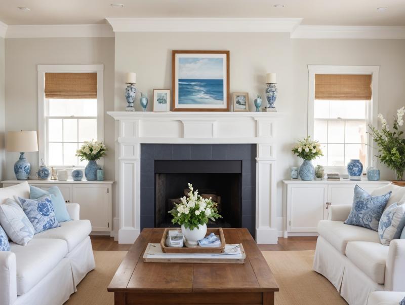 The New England aesthetic begins with a clean, calming color palette. Think crisp whites, soft beiges, and layers of ocean blues—from deep navy to pale seafoam. These hues mirror the colors of sandy beaches, weathered docks, and clear skies, evoking serenity with every shade.