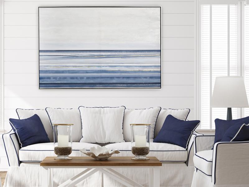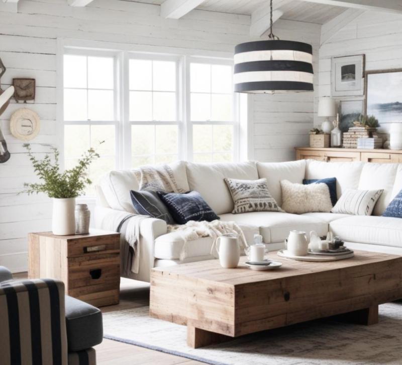 A defining trait of coastal charm is its connection to nature. Incorporate whitewashed wood furniture, linen upholstery, and woven rattan accents to bring warmth and texture to your space. Slipcovered sofas, bleached oak floors, and jute rugs all nod to the relaxed spirit of the coast.